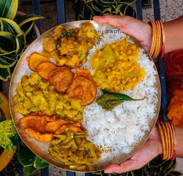 - banana, radish, green ginger, bottle leaves, and spices such as black cardamom and cloves.