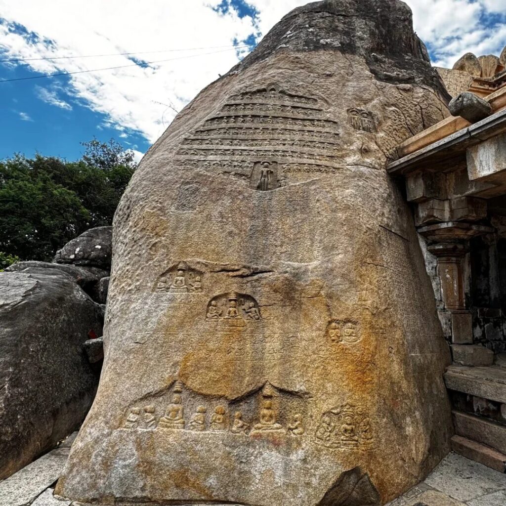 Some scholars are of the view that Jainism came much before arrival of Bhadrabhau and discard the Bhadrabahu-Chandragupta tradition. But looking at lithic evidence like structures, epigraphs and sculptures, one cannot deny the widespread presence of Jain philosophy in Karnataka for a long span of time. One such striking example is the nisidige or the memorial stones which show us the prevalence of such a practice which raised certain questions where one can relate it with either spiritual awakening of one’s soul or the extreme path to shed karmic matters.