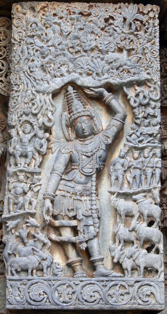 Dhanvanatari is regarded as the physician of the Devas. Some regard him as an avatar of Vishnu. As per the legends calling him as Vishnu’s incarnation, during his incarnation on earth, he reigned as the King of Kashi, today locally referred to as Varanasi. Dhanvantari is also identified as the great-grandfather of Divodasa, the King of Kashi mentioned in the Vishnu Purana who is known as the father of surgery in Ayurveda. At certain temples, like Chennakesava temple of Somnathpura, one can see the sculpture of Dhanvantari with iconographical features of Vishnu.