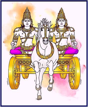 The Ashvin twins can also be understood as the pair of two vital breaths Prana and Apana, – in-breath and out-breath – which sustain the body functions, including assimilation of food, which provides energy to physical, mental and vital activities and their well-being.