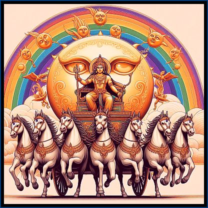According to Dhirgatamas, the sun has ‘seven heroes’ for sons, and he rides ‘seven yoked chariot, one wheeled’,