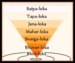 [Sri Sayanacharya explains: The tradition counts seven regions (Lokas); the seventh being the Sathya-Loka, which is beyond the uninitiated, tied to the mundane world of rituals. The other six Lokas (shad-rajamsi) which are said to be created by the movement of the Rajo-Guna are: Bhu (Earth); Bhuvaha (Mide-region); Followed by Four types of Heavens: Suvaha (Heaven); Mahaha; Janaha; and Tapaha.]